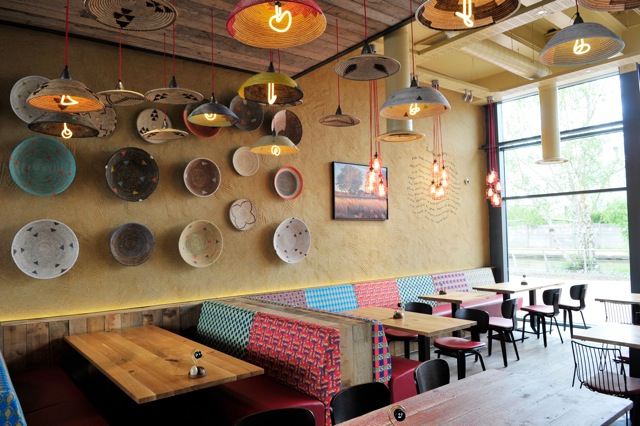 Handprint clay finish, Nando’s restaurant in Leigh, Greater Manchester