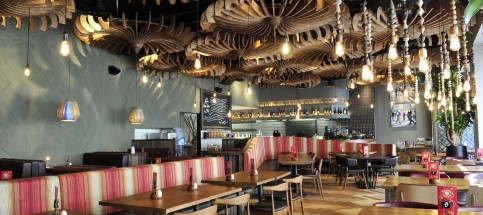 Anaglyptic clay textured wall, Nando’s restaurant in Leamington Spa