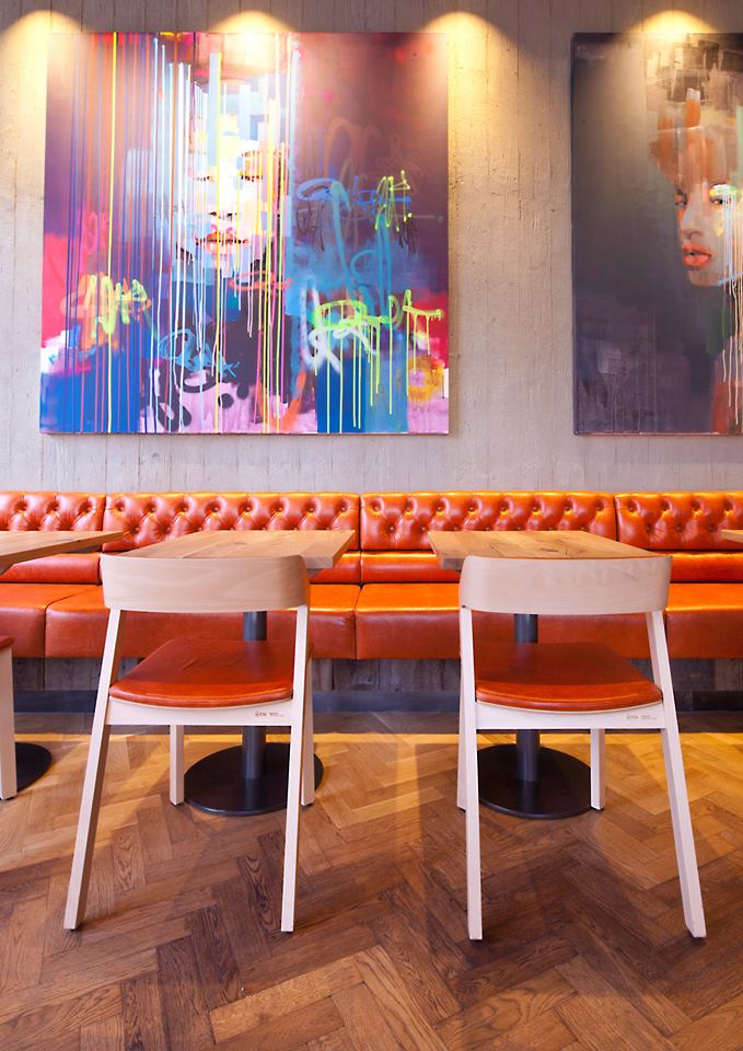 Board-marked shuttering clay finish, Nando’s restaurant in Telford