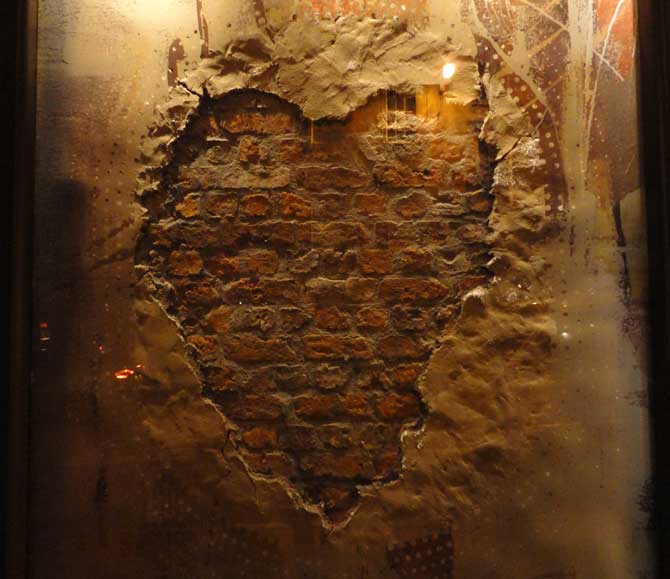 Carved heart clay wall image, Nando’s restaurant in Glasgow