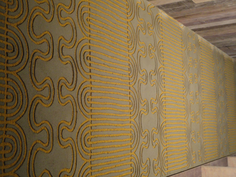 Carved clay wall, African inspired pattern, Nando’s restaurant in Redditch