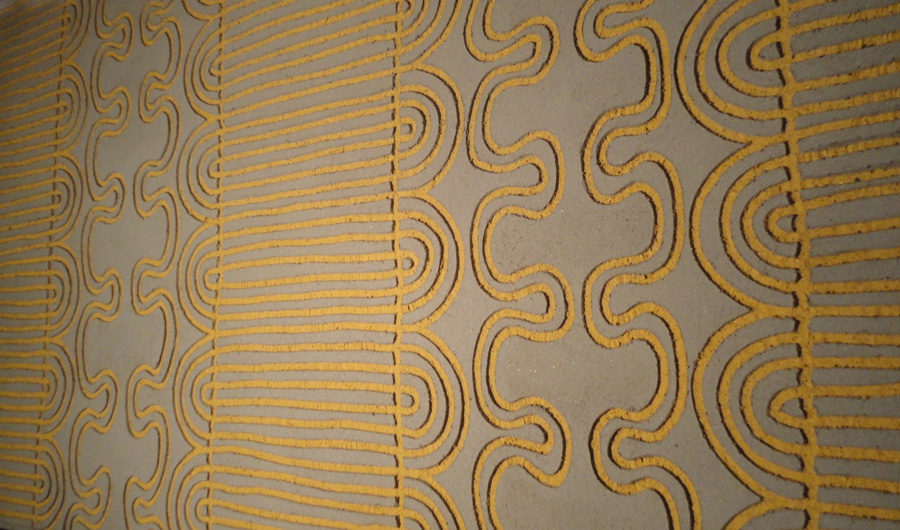 Carved clay wall, African inspired pattern, Nando’s restaurant in Redditch