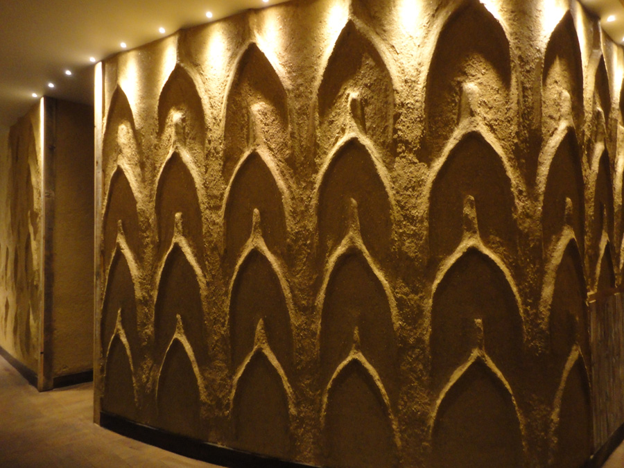 We create natural clay interiors (walls & ceilings), using a wide variety of textures and finishes: anaglyptic, embossed, debossed, carved, rough & rustic, smooth & polished, timber texture, shuttering effect, tadelakt, sand dune, handprint, undulated and rammed earth finish