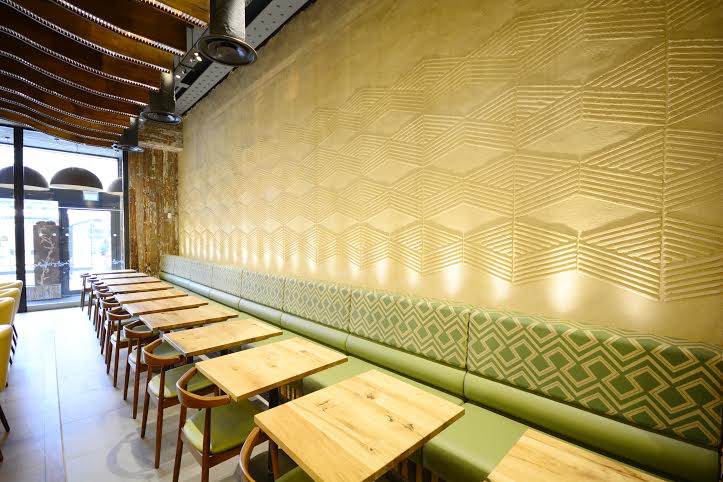 Anaglyptic clay finish, Nando’s restaurant in Manchester, photographer Helene Collie van de Langenberg