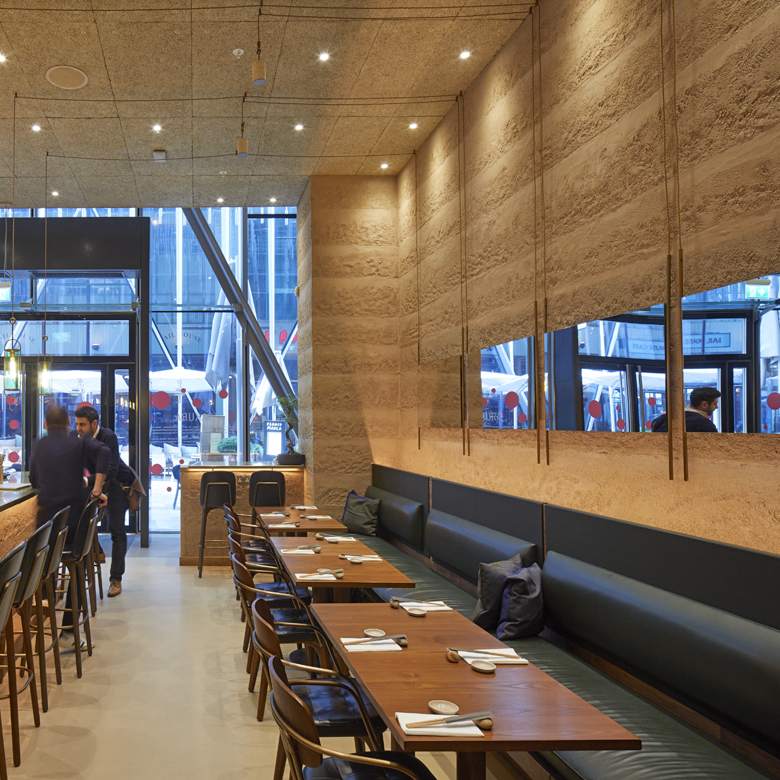 Rammed-earth-clay-plaster-finish-by-Guy-Valentine-Sticks-n-Sushi-Restaurant-in-London-design-by-Neri-and-Hu