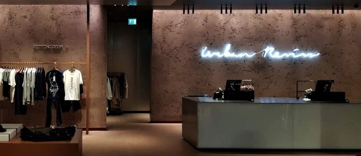 Textured Clay Installation by Guy Valentine Ltd, Urban Revivo Flagship Store at Westfield London, photo by Linde Davies 3